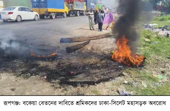 তিন মাসের বকেয়া বেতনের দাবিতে নারায়ণগঞ্জের রূপগঞ্জ উপজেলার তারাবো পৌরসভার বরপা এমবিয়েন্ট ষ্টিল বিডি লিমিটেডের শ্রমিকরা ঢাকা-সিলেট মহাসড়ক অবরোধ করেছে। ৪ঠা নভেম্বর মঙ্গলবার দুপুরে শ্রমিকরা মহাসড়কের বরপা এলাকায় টায়ার জ্বালিয়ে এ কর্মসূচি পালন করে। খবর পেয়ে রূপগঞ্জ থানা ওসি মোহাম্মদ তরিকুল ইসলাম উপস্থিত হয়ে মিল কর্তৃপক্ষের পক্ষে এ মাসেই বকেয়া বেতন পরিশোধের আশ্বাস দিলে শ্রমিকরা অবরোধ তুলে নেয়। অবরোধের সময় মহাসড়কের উভয় দিকে দীর্ঘ যানজটের সৃষ্টি হয়।