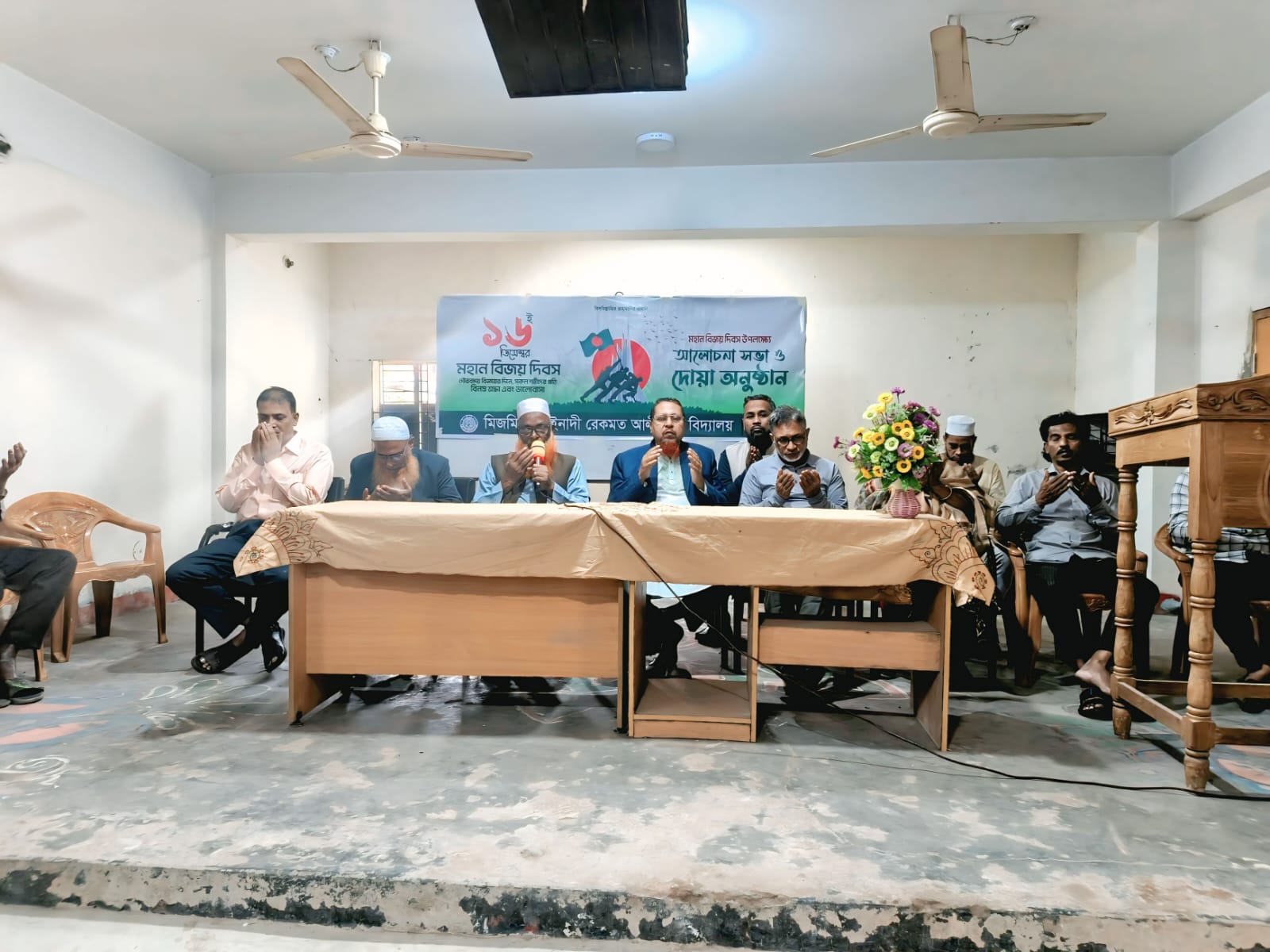 মহান বিজয় দিবস উপলক্ষে সিদ্ধিরগঞ্জে মিজমিজি পাইনাদি রেকমত আলী উচ্চ বিদ্যালয়ে আলোচনা সভা ও দোয়া মাহফিল অনুষ্ঠিত হয়েছে। মঙ্গলবার (১৬ ডিসেম্বর) সকালে বিদ্যালয়ের হলরুমে এ অনুষ্ঠানের আয়োজন করা হয়।