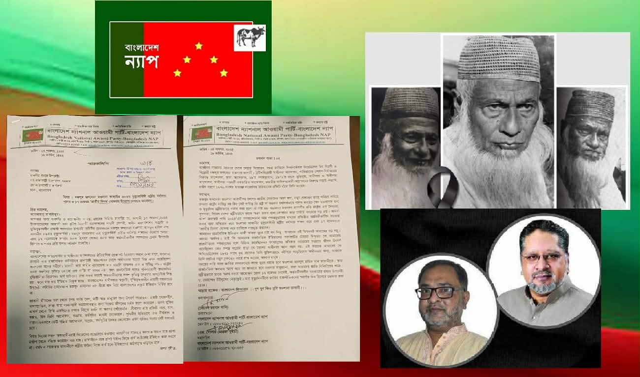 আগামী ১৭ নভেম্বর স্বাধীন বাংলাদেশের স্বপ্নদ্রষ্টা ও মুক্তিযুদ্ধকালীন প্রবাসী সরকারের উপদেষ্টা কমিটির চেয়ারম্যান মজলুম জননেতা মওলানা আবদুল হামিদ খান ভাসানীর ৪৯তম মৃত্যুবার্ষিকী রাষ্ট্রীয় মর্যাদায় পালনের উদ্যোগ গ্রহন ও ১৭ নভেম্বরকে জাতীয় দিবস হিসাবে ঘোষনা করার জন্য অর্ন্তবর্তীকালীন সরকারের প্রধান উপদেষ্টার প্রতি আহ্বান জানিয়ে স্মারকলিপি প্রদান করেছেন বাংলাদেশ ন্যাশনাল আওয়ামী পার্টি (বাংলাদেশ ন্যাপ)।