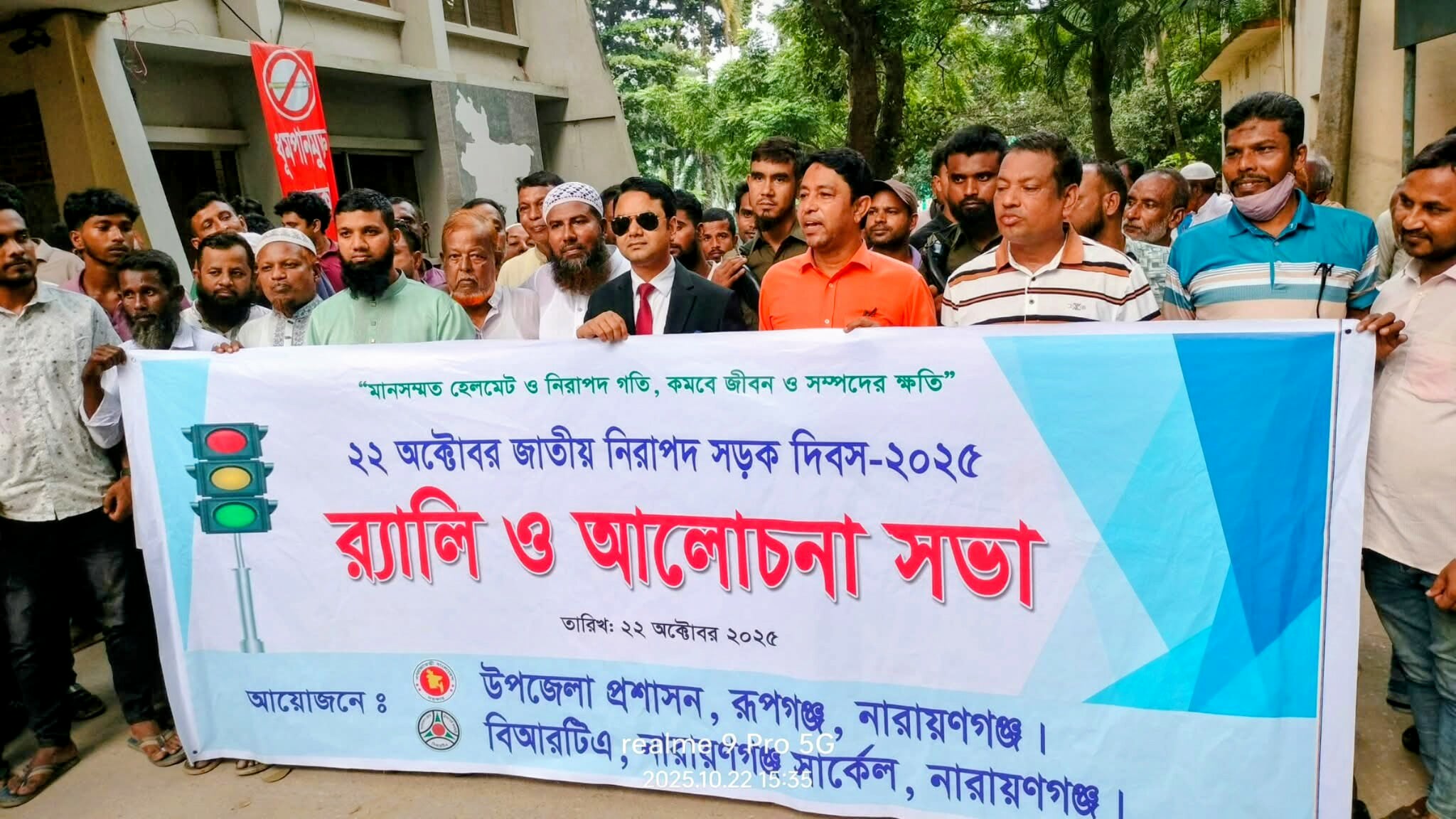বুধবার (২২ অক্টোবর) রূপগঞ্জ উপজেলা প্রশাসন ও বিআরটিএ নারায়ণগঞ্জ সার্কেল এর আয়োজনে জাতীয় নিরাপদ সড়ক দিবস-২০২৫ উপলক্ষে এক বর্ণাঢ্য র্যালি ও আলোচনা সভা অনুষ্ঠিত হয়।