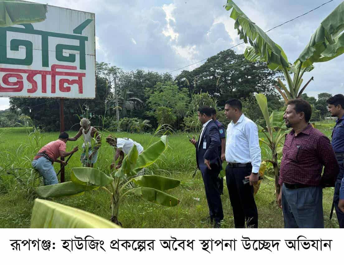 রাজউকের পূর্বাচল উপশহরের রূপগঞ্জ উপজেলার দাউদপুর ইউনিয়নের বাগলা এলাকার ইস্টার্ন ভ্যালি, পূর্বাচল সাউথ ইস্ট ভ্যালি, সিটি স্কয়ার হোম টাউন, গ্রিন আর্থ টাউন ও মাদানী টাউন নামক হাউজিং প্রকল্পের অবৈধ স্থাপনা উচ্ছেদ অভিযান পরিচালনা করা হয়েছে। ৭অক্টোবর মঙ্গলবার রূপগঞ্জ উপজেলা নির্বাহী অফিসার মোঃ সাইফুল ইসলাম এ অভিযানের নেতৃত্ব দেন।